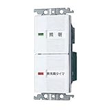 まず、スイッチのつくりとして上が照明、下が換気扇です。上の照明スイッチはほたるスイッチが採用されていて、ほたる機能はスイッチのランプがOFF時に緑色、ONで消灯となります。